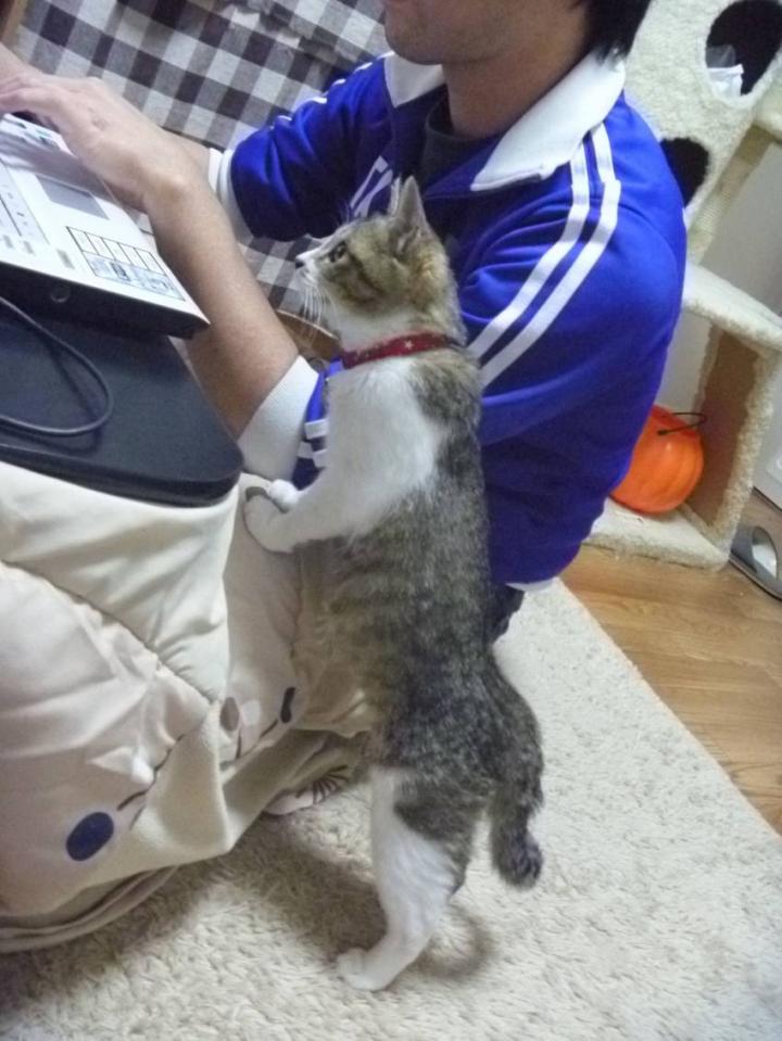 更に、飼い主1はみかんを抱っこしながら仕事をしたかった模様。。。