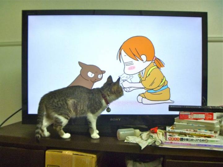 飼い主1がリビングで上映中(笑)の「くるねこ」みたさに