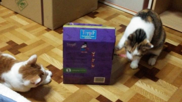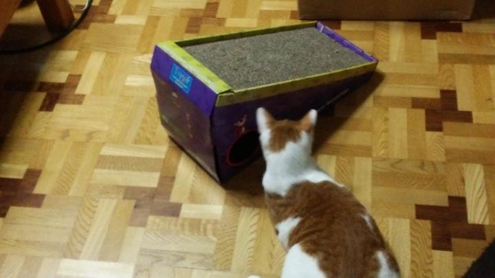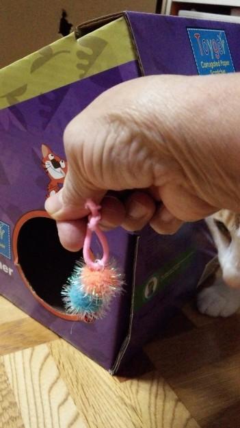 でオモチャの付いた三角の爪研ぎ頼みました。