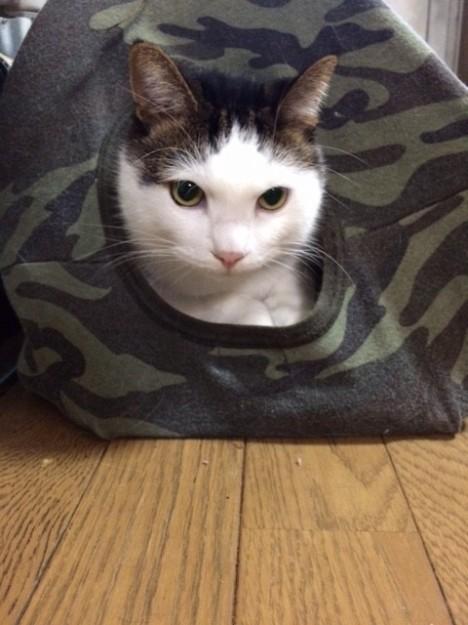 このテント、子供用のTシャツで作ったので、マリーが入るとちょっとキツイ感じです。