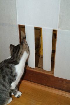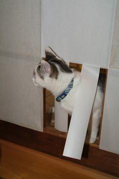 日中ほとんどかまってあげられなくて、よく寝てる姿をWebカメラで見ていると「家に来て本当に良かった?」と疑問を持つこともあった。でも、それでも、この仔たちがここにいなかったら、この命がこの世の中からいなくなっていたかも...と考えると...ツライ。運良く?この二人は仲が良く、賢いみたい(@対象ネコがいないから)なので、粗方のことは譲歩するか。それには、環境整備をしてあげなくちゃ...と、「ぴらぴら」障子紙。ご飯計りとか、遊び場の出入り...健康管理もか。たぶん二人でいるときに「ご主人は、今度なにをやらかすのかねぇ?」と言われているかもしれない、この仔たちが何かをやらかすたびに...。