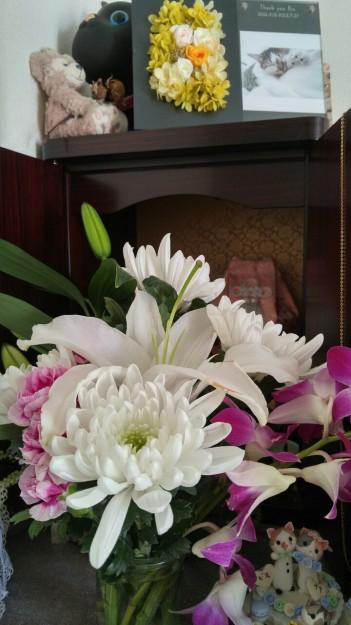 お花をいただいてきたので、リンちゃんの前は混雑中。