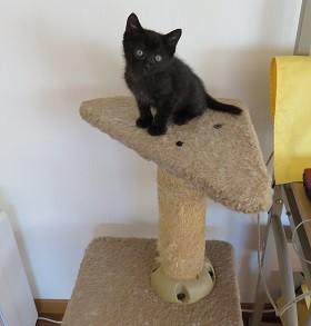 今日パソコンをしてたら、隣にあるキャットタワーの2階によじ登ってました。
