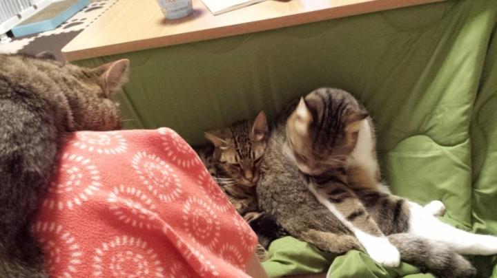 こたつの上にいることも多いけど、寒くなってきたら断然距離が近いです。