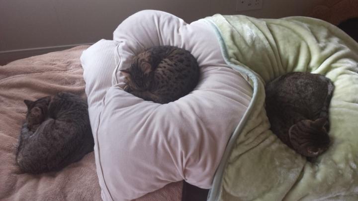 ドラくんが膝にきて、そのうちにニコちゃんとサクちゃんが寄ってきて…(*≧∀≦*)