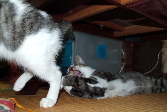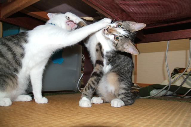 ささが大和を舐めようとすると、大和は「やめれ!」と言わんばかりに、拒否をする。それで放って置けばいいのだけれど、執拗に大和にちょっかいを出してくる。...ここまで来ると時間の問題でゴングが打ち鳴らされたかのようなK-1(プロレスだと思っていたのに...)がはじまる。私が起きている時間に開催されるのは、興行主(←だれ?)の配慮か!?