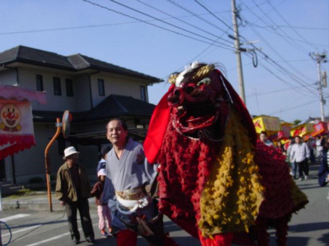 ↓朝10時すぎ、最初のシシガンガンが通ります。子供の頭を食べてもらうと無病息災だそうです。