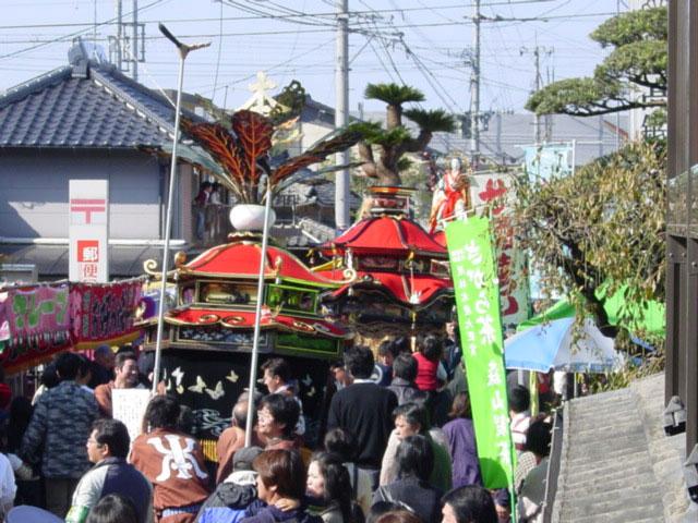 昔の城下町だったそれぞれの町がそれぞれの笠鉾を「ホイホイ」と声かけながら通ります。