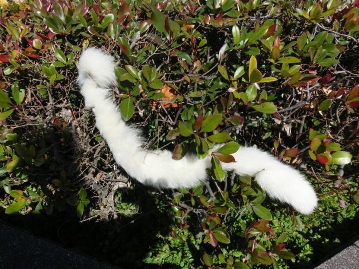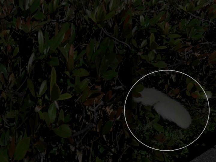 !!!生け垣から何かの尻尾が・・・
