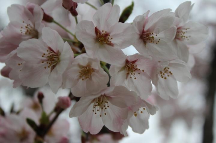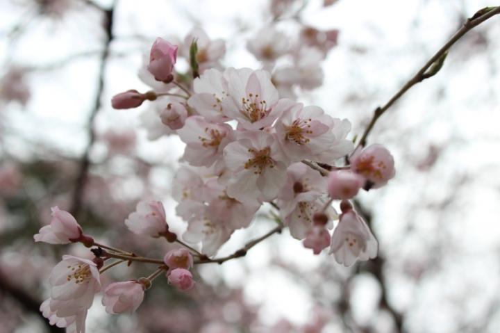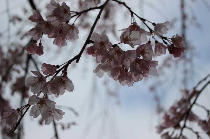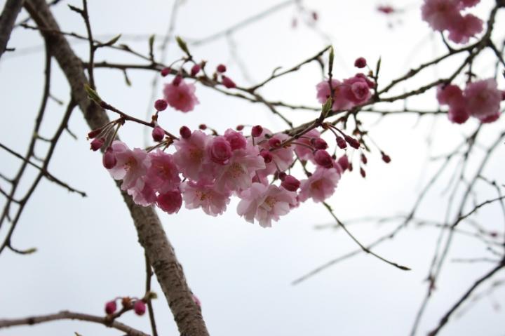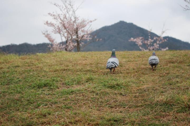 ソメイヨシノとしだれ桜となぜか鳩ぽっぽー。