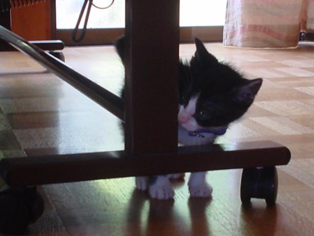 テーブルの下やベッドの下、すぐにゆずはかくれんぼ。