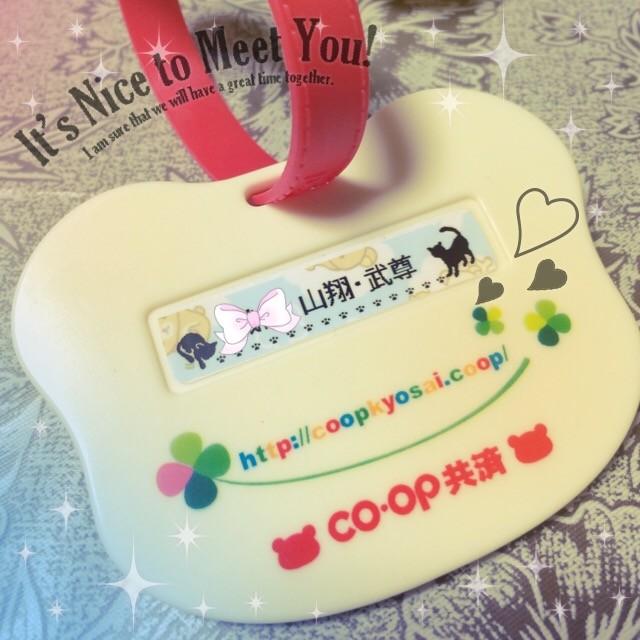 ベビーカー用のネームタグをコープさんから貰ったのでキャリー号に付けるため名前貼り付けました(=´∀`)人(´∀`=)