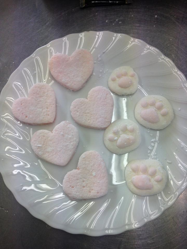 今日はねこ活のデザートになればなぁって肉球マシュマロを一から作ってみた〜♪