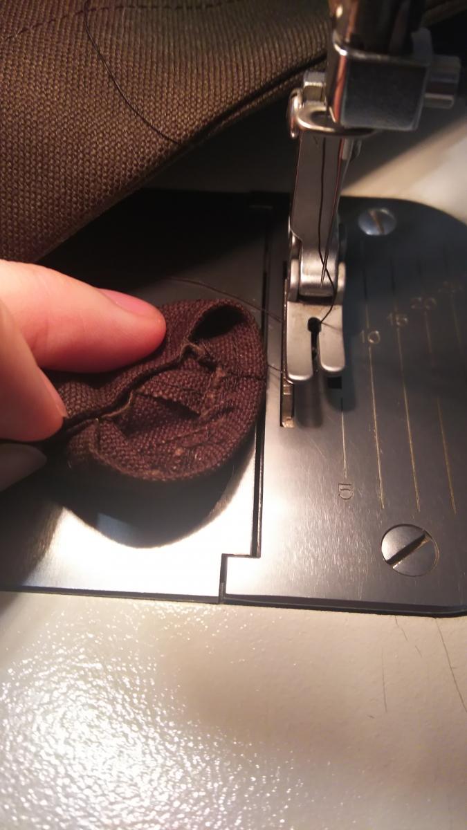 どうせ根元までは縫えないんだから、先に1cm手前位まで縫っちゃったほうがよかったかなぁ…