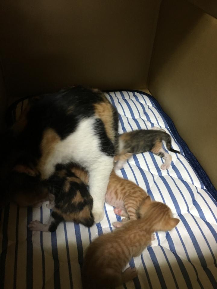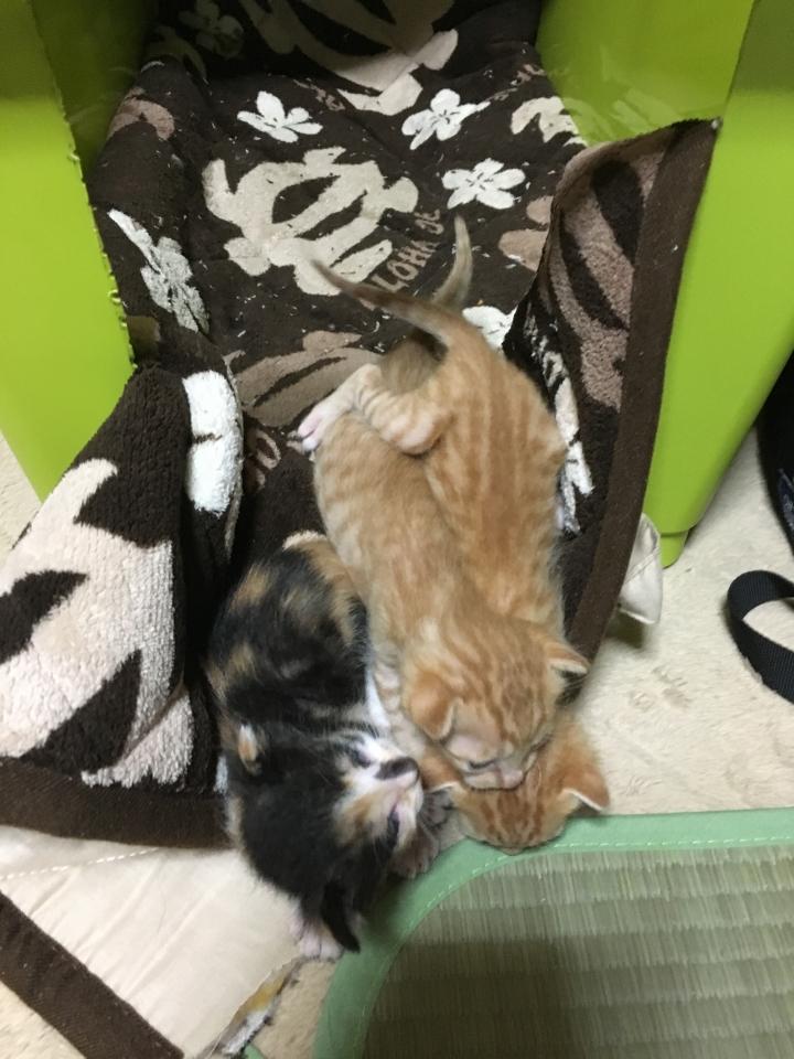 カイン◯ホームで大きめで深さのあるダンボール箱を書い(200円くらい)、し◯むらで買った枕用マットレス?(500円くらい)をひいてみました。