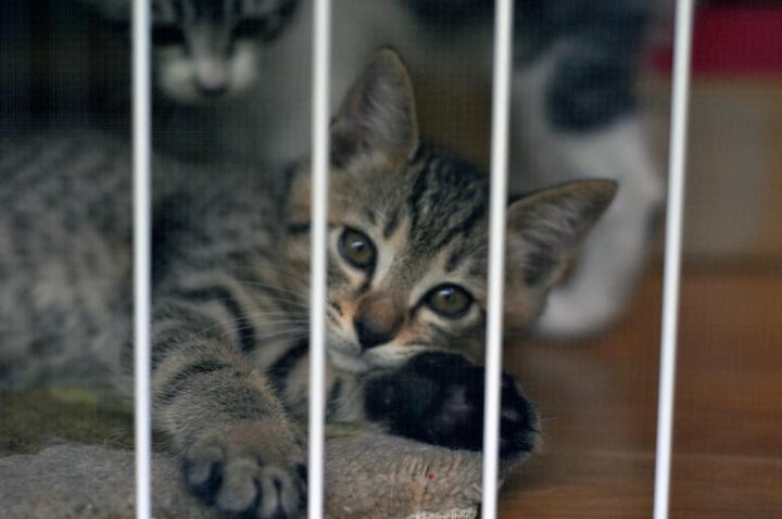 ↑網戸越しにアッガイ、本日里親様のもとへ