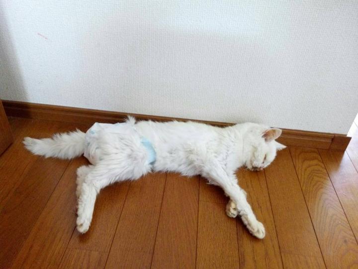 昨日、ミカンはとうとう足腰が立たなくなってオムツにしたと、