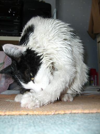『んもぉ~!濡らされて気持ち悪いわっ』・・・って感じで一生懸命毛繕い(笑)