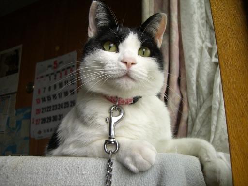 そして春~秋にかけて、涼しい時間帯に外の洗濯物干しポールを支えているブロックに繋いでもらって、庭で散歩もどきの事はさせています。