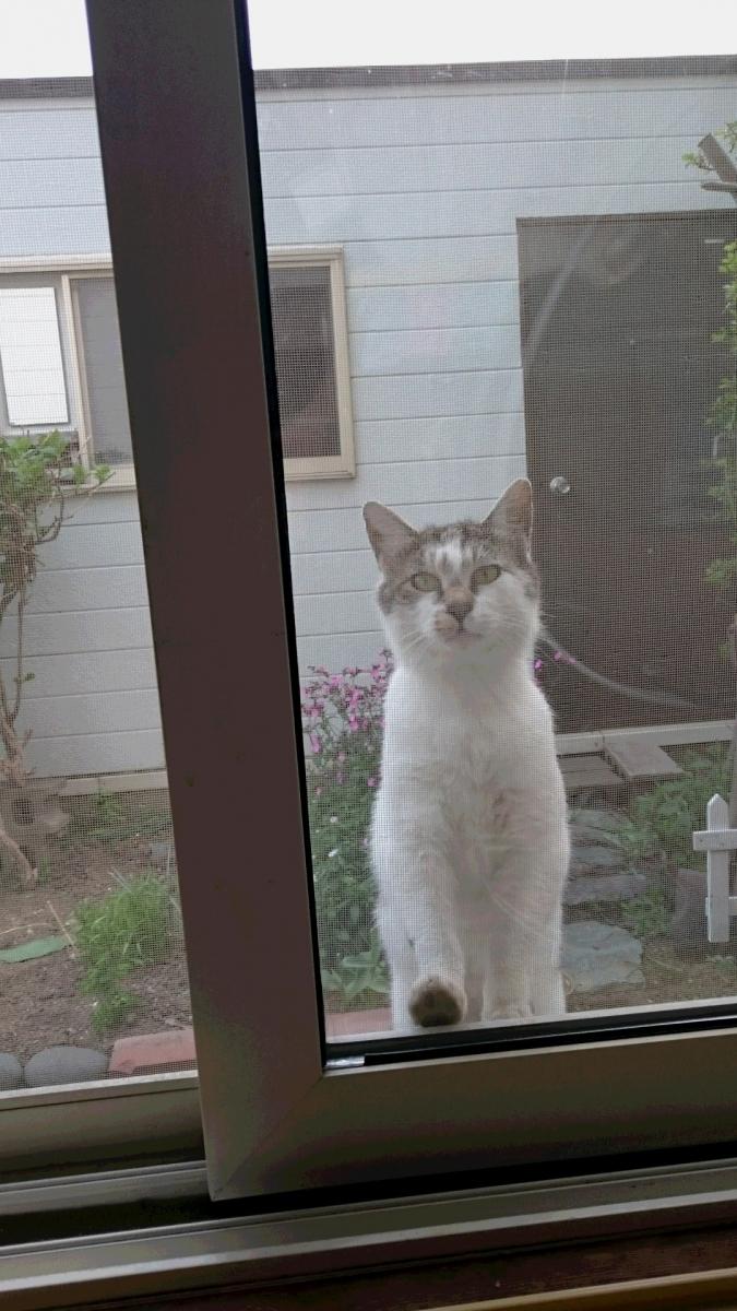 毎日、「お家に入りたいよ~。保護してよ~。」と窓ガラスをカリカリとします。