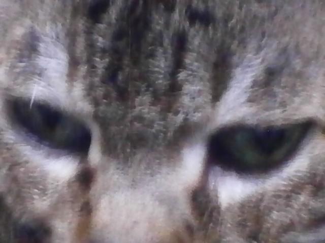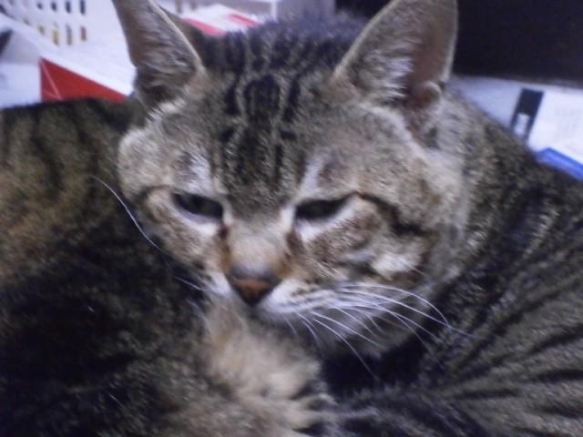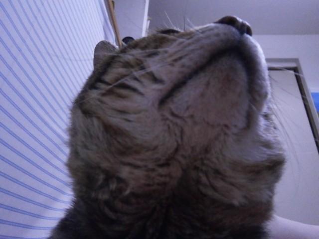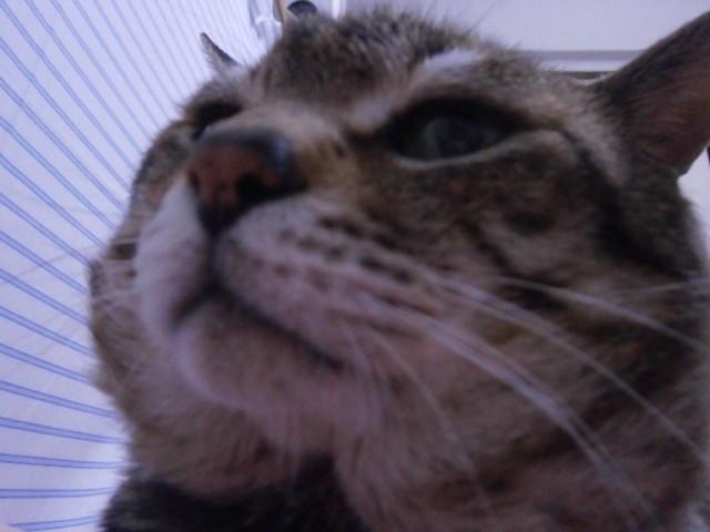 上から見ると幼い顔のねこ君もやはり下からだと年相応。