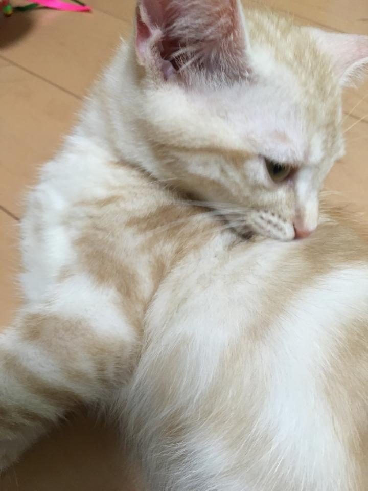 診察台は怖いところ!と覚えていたようで、診察台に乗せられた時、尻尾の毛がボワンボワンに膨らむ&尻尾をお腹の下に。