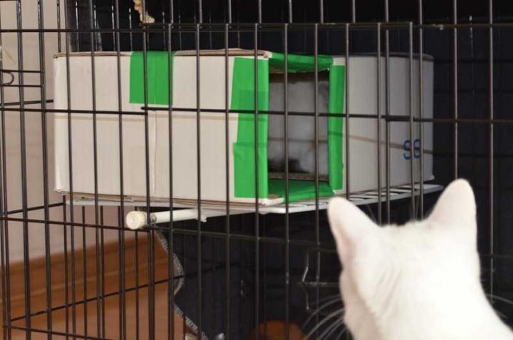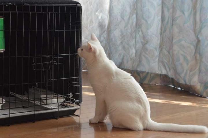 対するレン君は、ゲージの中にある箱の中でジッとして時々外をキョロキョロしてご飯もちゃんと食べてくれました。