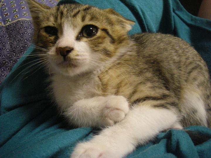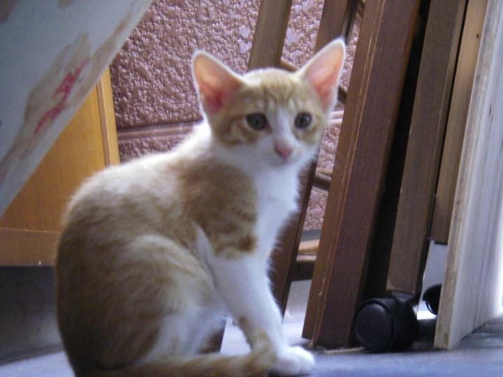 茶トラ君は野良猫の子供です。一匹で居た所を私の友達に保護されました。家族が見つかり良かった。でもね。白茶トラ君どうしたもんだろう。