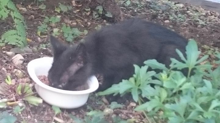 1匹は2ヶ月になるかならない位の黒猫の仔猫。目やにが沢山ついていて、ガリガリに痩せていました。