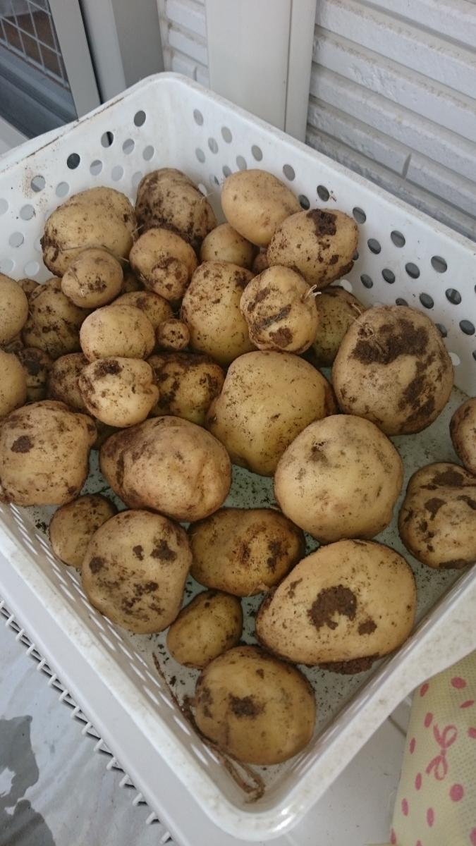 風邪も何とか治まったので、裏の草むしりをしたら春に植えた昨年のジャガイモがゴロゴロ出てきました。(笑)