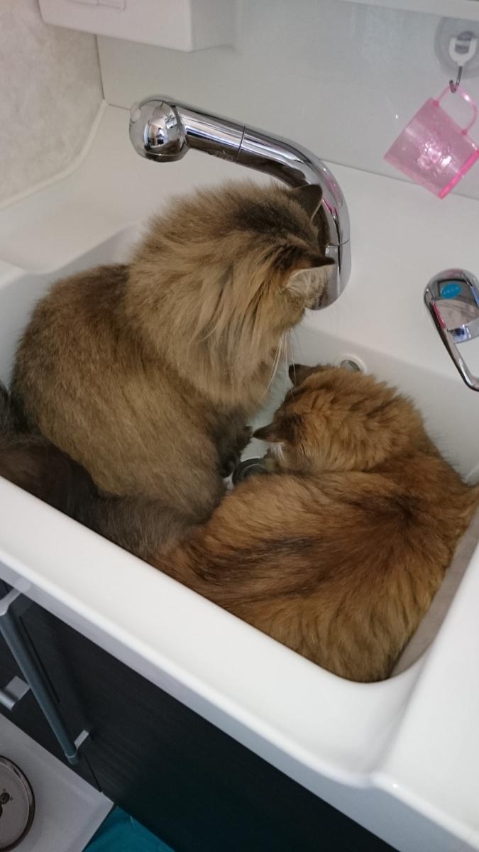普段のひめちゃんとごん太君!暑い日には洗面台で水遊びです。