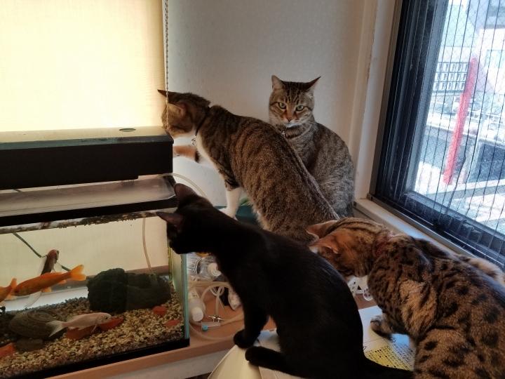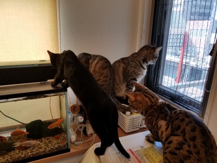 以前日記にも載せたんですが、金魚さんの隔離を室内でしたら、サクちゃんがやたらと金魚さんを眺めるようになってしまいました😅