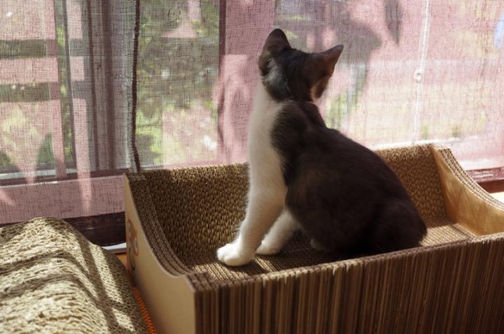 ファーストペンギンなはずのキジ白は、1日こもったのちにケージから出陣。