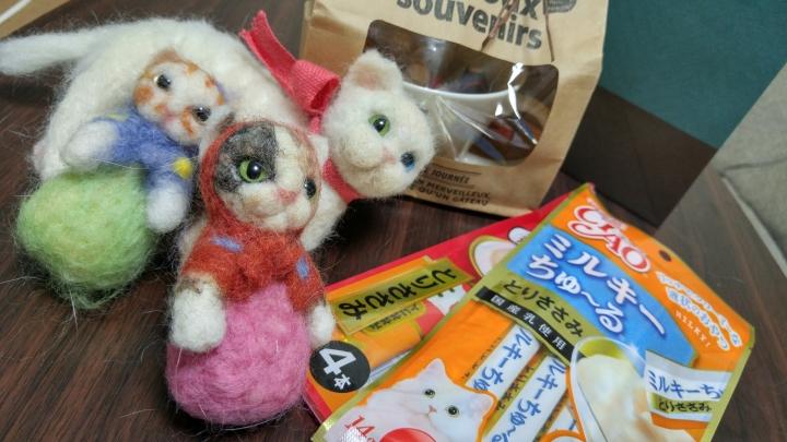 ねこばこさん、羊毛フェルトたちを乱雑に扱ったり、、