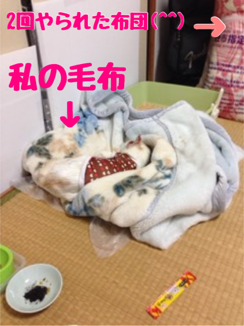 ふかふかのところがいいのか、最近朝晩寒いからか、私の毛布が占領される。