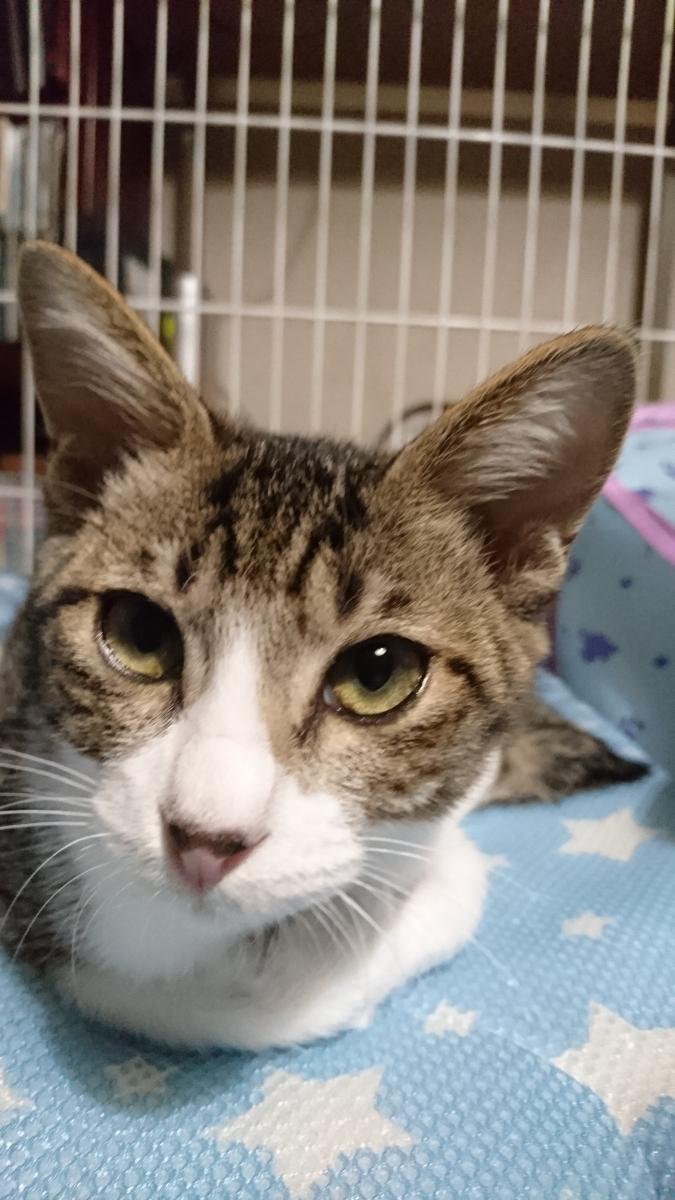 先住猫1(5歳 男子)には盛大にシャーして、先住猫2(4歳 男子)とはケージ越しに猫パンチ合戦で遊んでいます。