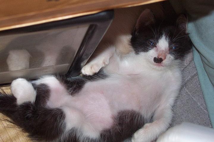 猫友から「お宅の庭から子猫の鳴き声がするらしいよ」と電話があり一緒に探して見つけたのが”八割れ”ちゃん。。。取り敢えずコウ(幸)と呼ぶことにした。(柴咲コウにも因んで)