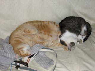 似た格好で寝てるけど、どうみても「親猫」と「仔猫」