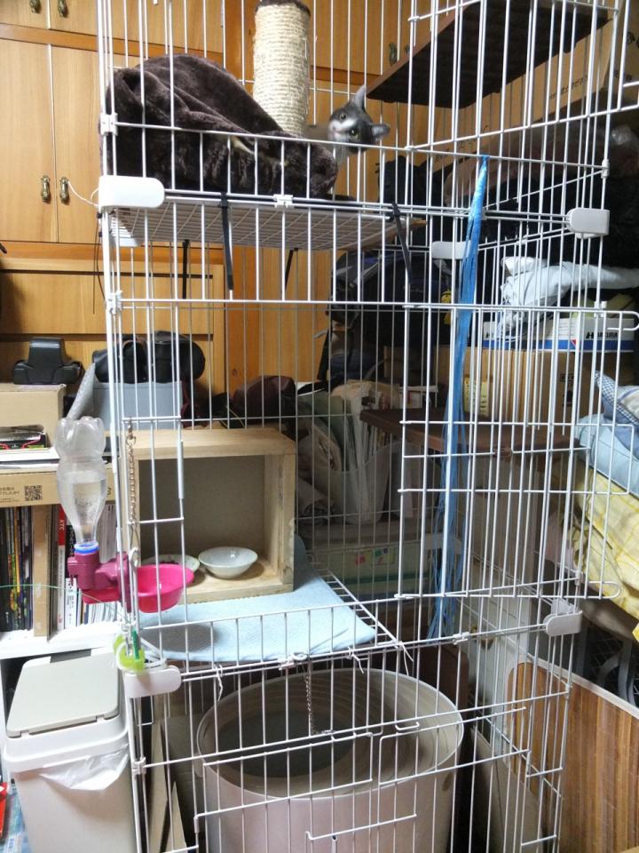 でも三段ケージの一階はトイレ専用ルームになってしまった。