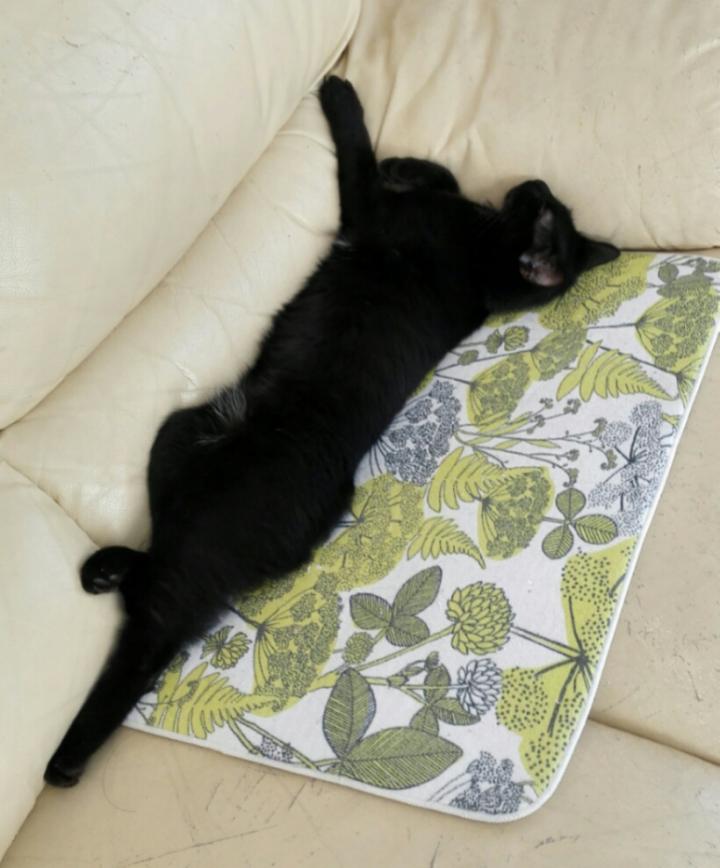 朝はちょっと寒かったのかこてつ君はまあるくなって寝ていたけれど、さすがに昼間は暑くて伸びて寝ていました。