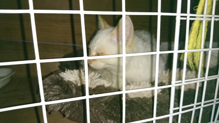あとはトイレにベッドがわりのクッション、湯タンポ、フリース、お水に餌を入れて、捨てる寸前の毛布でゲージを囲った。