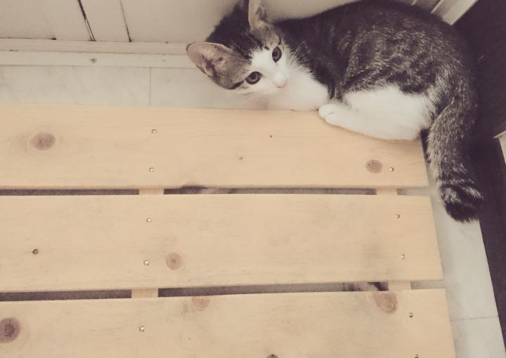 写真だとわかりにくいのですが、一生懸命右手をすのこの下につっこんでます(笑)