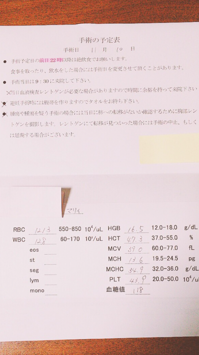 心臓のエコー検査と採血などして頂き、問題無かったので11月10日に手術予約して来ました。