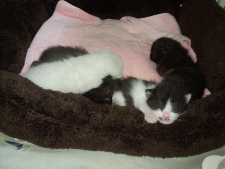 子猫ちゃん産まれてきて⑫日たちました。スクスク育ってます。目はあいてるけどまだ見えてないのかな?昨日ママネコと子猫ちゃんたちにベッド買ってあげました~暖かいかな?