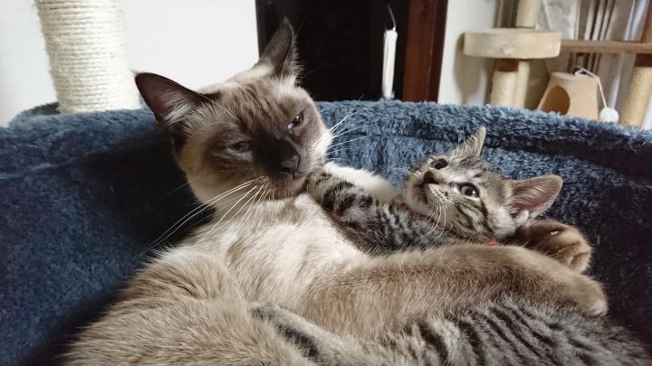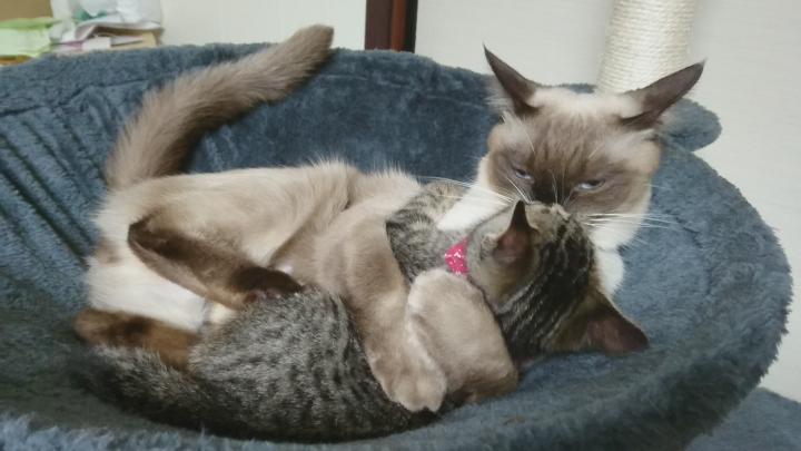 たまに、大福をマツリちゃんが追いかけてます。トムとジェリーみたいな対格差や…(笑)