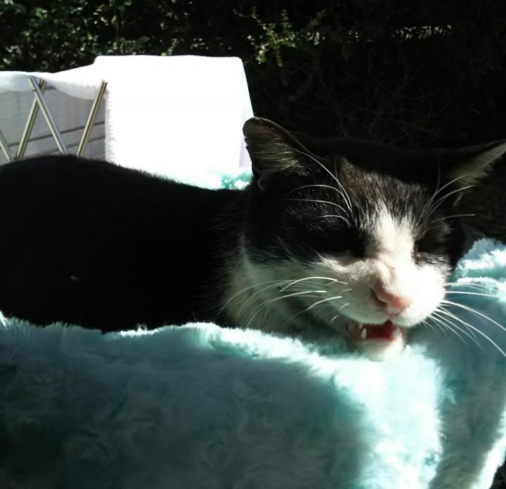 私に捕獲され、病院で嫌な思いしたけれど、うちの庭に用意したビニールで囲ったゲージに来て、この寒さをしのいで夜は、休んでいます。