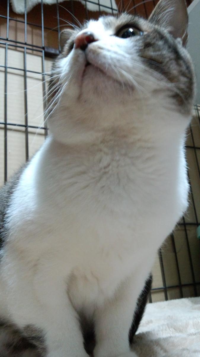 気持ちよく眠っていたところを無理やり起こされ、知らない所に連れていかれ、前足をぎゅーっと掴まれ、無理やり引っ張り出され、そりゃあ怖かったよね、と思うとこちらもなんだか泣きたくなりそうな気持ちで。