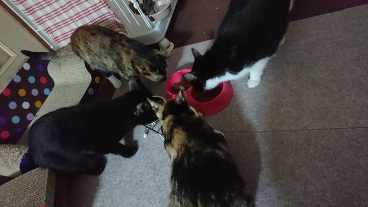 小さいのが横から食べても怒らないし、空いてるところに行けばいいやって感じでみんながずれてくれる。