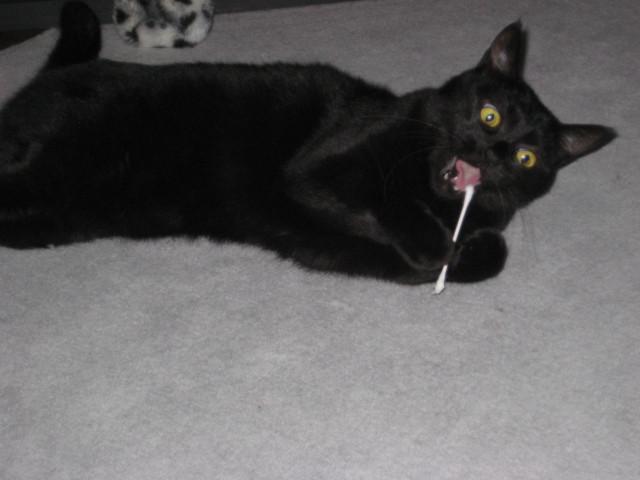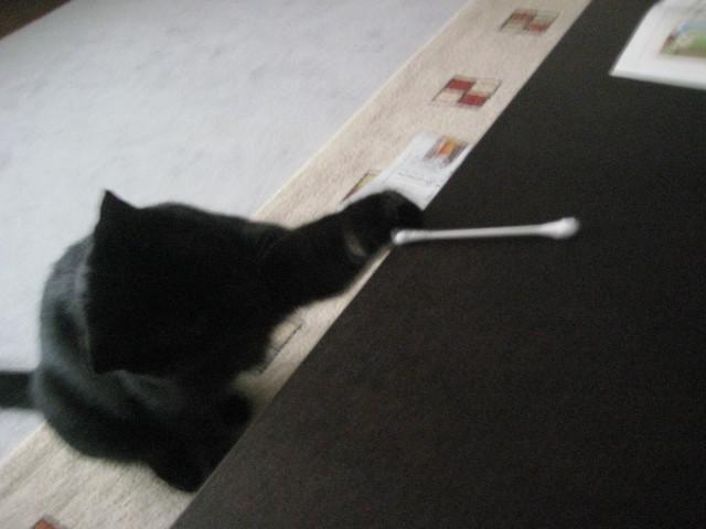 いつのころからか、耳をくるくる、テーブルの上に置いてあった綿棒をハンターの目つきでロックオン!そ~っと手を伸ばし、引きずりおろすと狂ったように遊びだすここちゃんがそこにいました。