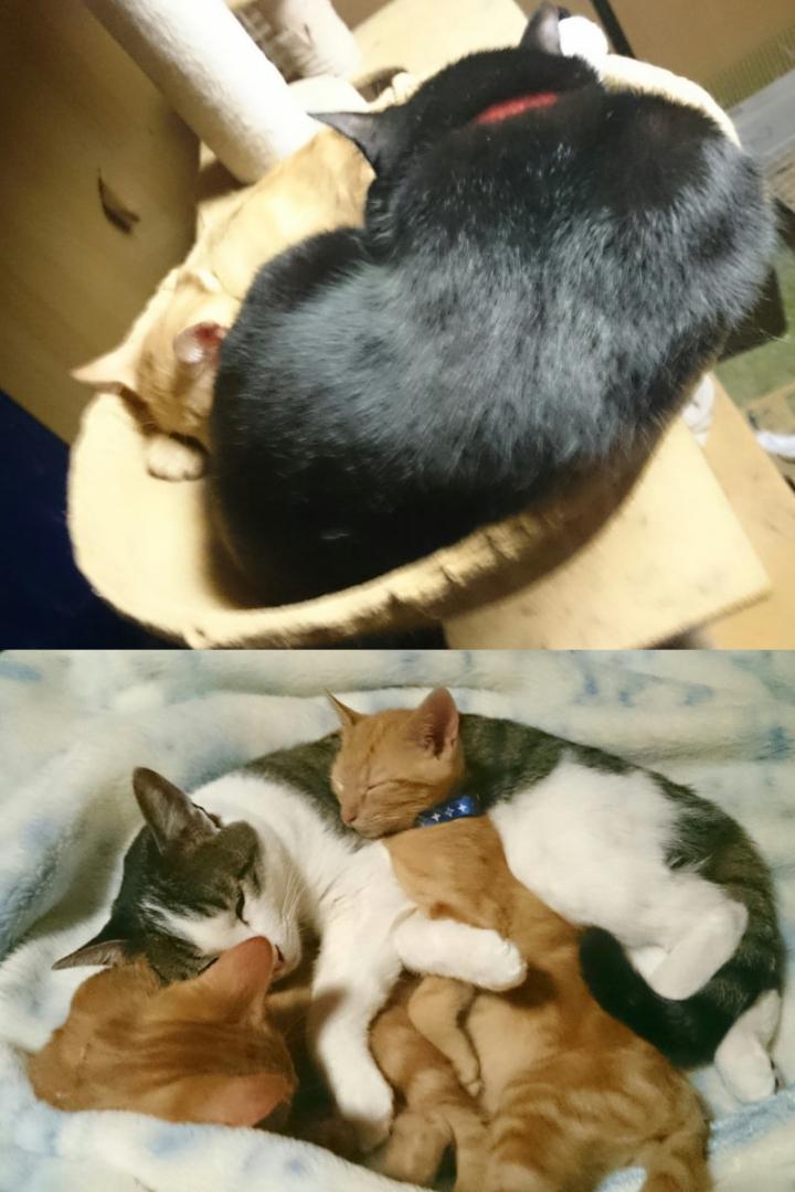 「しんどい、身体が重い、寝ていたい……しかし仕事が~、保護猫さんが~」と弱音を吐きそうになる度に、私の身体をがっちりホールドして温めてくれている猫さんたちに励まされています。